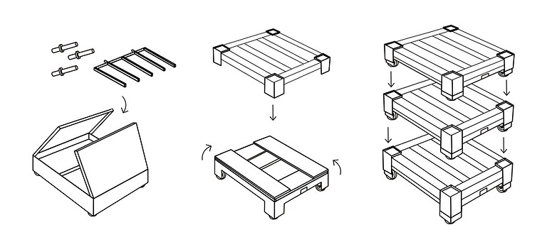Removable Logo Plates folded down to hide the pallet and castor wheels